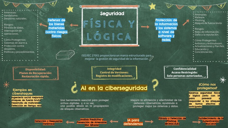 Amenazas: Vandalismo. Desastres naturales. Riesgos: Pérdida de datos. Interrupción de operaciones. Cómo Protegernos: Sistemas de alarm a. Protección contra desastres. Políticas y procedimientos.