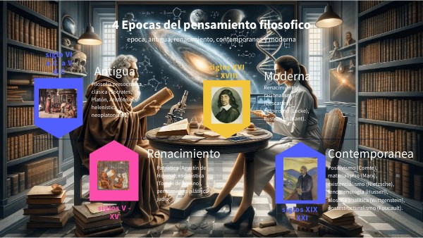 Renacimiento, racionalismo (Descartes), empirismo (Locke), Ilustración (Kant).