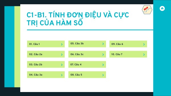 C1-B1. TÍNH ĐƠN ĐIỆU VÀ CỰC TRỊ CỦA HÀM SỐ