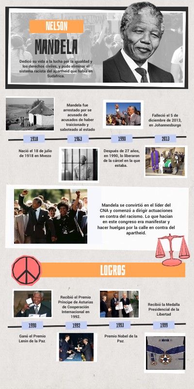Dedicó su vida a la lucha por la igualdad y los derechos civiles, y pudo eliminar el sistema racista del apartheid que había en Sudáfrica.