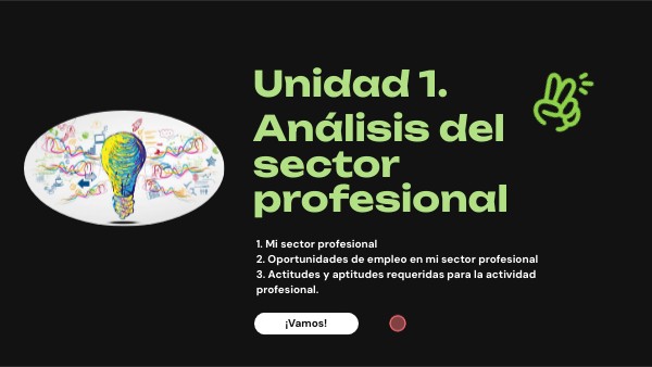 1. Mi sector profesional 2. Oportunidades de empleo en mi sector profesional 3. Actitudes y aptitudes requeridas para la actividad profesional.