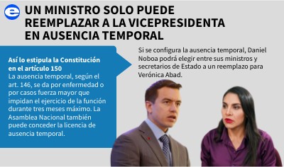 Si se configura la ausencia temporal, Daniel Noboa podrá elegir entre sus ministros y secretarios de Estado a un reemplazo para Verónica Abad.
