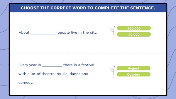 Every year in __________ there is a festival with a lot of theatre, music, dance and comedy.