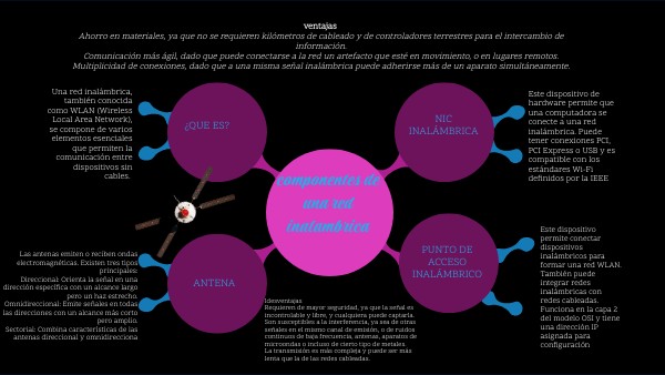ventajas Ahorro en materiales, ya que no se requieren kilómetros de cableado y de controladores terrestres para el intercambio de información. Comunicación más ágil, dado que puede conectarse a la red un artefacto que esté en movimiento, o en lugares remotos. Multiplicidad de conexiones, dado que a una misma señal inalámbrica puede adherirse más de un aparato simultáneamente.