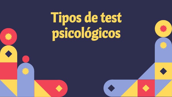 Los test psicológicos son instrumentos estandarizados utilizados para medir de forma rápida una o más características que forman parte de la psique humana como personalidad, inteligencia, atención. Existen diversos tipos como verbales, gráficos, manchas y son utilizados en diversos contextos (laboral, jurídicos). Algunos pueden aplicarse a toda la población y otros solo a niños, adolescentes o adultos.