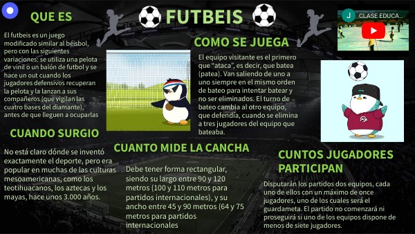 El futbeis es un juego modificado similar al béisbol, pero con las siguientes variaciones: se utiliza una pelota de vinil o un balón de futbol y se hace un out cuando los jugadores defensivos recuperan la pelota y la lanzan a sus compañeros (que vigilan las cuatro bases del diamante), antes de que lleguen a ocuparlas