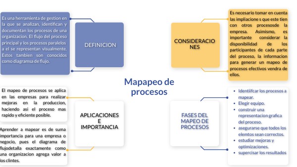 El mapeo de procesos se aplica en las empresas para realizar mejoras en la produccion, haciendo asi el proceso mas rapido y eficiente posible.