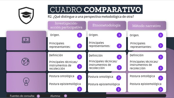 Rodríguez, S., Herráiz, N., Prieto, M., Martínez, M., Picazo, M. Y Castro, I. (2010-2011) “Investigación acción” Recuperado de https://files.cercomp.ufg.br/weby/up/97/o/IA._Madrid.pdf Consultado el 12/06/2024 López, A. (2012) “UNA ALTERNATIVA PARA FORTALECER LA INVESTIGACIÓN DEL PROCESO DE ENSEÑANZA Y APRENDIZAJE. Investigación acción” Recuperado de https://cea.uprrp.edu/wp-content/uploads/2013/05/investigacion_accion_cea.pdf Consultado el 12/06/2024 Esquivel, O. (2015) "La Etnometodología, una alternativa relegada de la educación" Vol. 6, núm. 12. Recuperado de https://www.redalyc.org/articulo.oa?id=498153966008 consultado el 12/06/2024 León, G. (s.f.) “La narrativa, como recurso en la investigación educativa” Recuperado de https://praxisinvestigativa.mx/assets/13_7_narrativas.pdf Consultado el 13/06/2024 Pedroza, P. (s.f.) "Lección 5. La etnometodología como perspectiva metodológica" Recuperado de https://avalicmod19c.uveg.edu.mx/mod/scorm/player.php?a=3400¤torg=MC-L5-Leccion_ORG&scoid=7241 Consultado el 14/06/2024