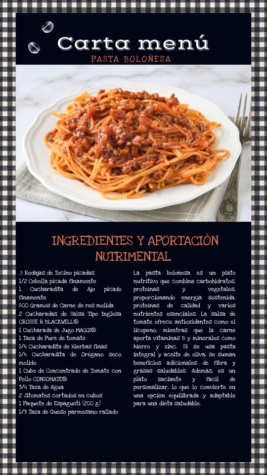 La pasta boloñesa es un plato nutritivo que combina carbohidratos, proteínas y vegetales, proporcionando energía sostenida, proteínas de calidad y varios nutrientes esenciales. La salsa de tomate ofrece antioxidantes como el licopeno, mientras que la carne aporta vitaminas B y minerales como hierro y zinc. Si se usa pasta integral y aceite de oliva, se suman beneficios adicionales de fibra y grasas saludables. Además, es un plato saciante y fácil de personalizar, lo que lo convierte en una opción equilibrada y adaptable para una dieta saludable.