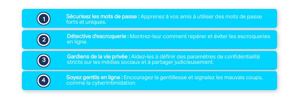 Sécurisez les mots de passe : Apprenez à vos amis à utiliser des mots de passe forts et uniques.