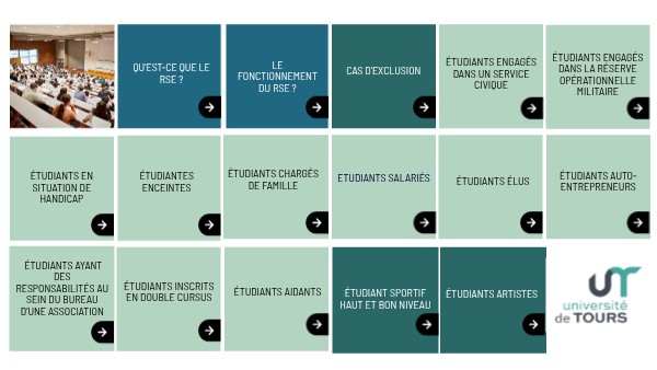 Étudiants artistes : Ces étudiants bénéficient d’un statut particulier et leur situation fait l’objet d’une procédure particulière. Une page est dédiée au dispositif sur le site internet de l’université. Ces étudiants ne doivent pas remplir le formulaire RSE.