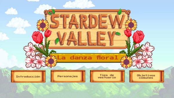 ¡Bienvenidos a Pueblo Pelícano! Stardew valley es un juego RPG donde gestionas tu propia granja y estableces relaciones con el resto de los aldeanos. Todos los rincones están plagados de misterios y todos los aldeanos tienen su propia historia, sueños y personalidad. Durante todo el año el alcalde realiza varios eventos para la comunidad donde hay oportunidades para conocer mejor a los aldeanos y alejarte un poco del trabajo de granja. En esta ocasión viviremos una de estas fiestas anuales. La danza floral. La danza floral transcurre en primavera, donde las personas solteras del pueblo se juntan para bailar y conocerse mejor entre ellos. A parte de disfrutar de un día de fiesta, bebida y buena conversación. Música, danza, buena vestimenta y el amor en el aire… el objetivo de esta festividad es encontrar una pareja con la que clausurar el baile final y, básicamente, hacer amigos y ver qué tal le va a la gente del pueblo.
