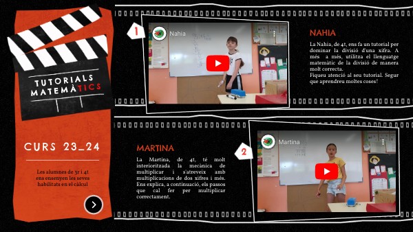 La Nahia, de 4t, ens fa un tutorial per dominar la divisió d'una xifra. A més a més, utilitza el llenguatge matemàtic de la divisió de manera molt correcta. Fiqueu atenció al seu tutorial. Segur que aprendreu moltes coses!