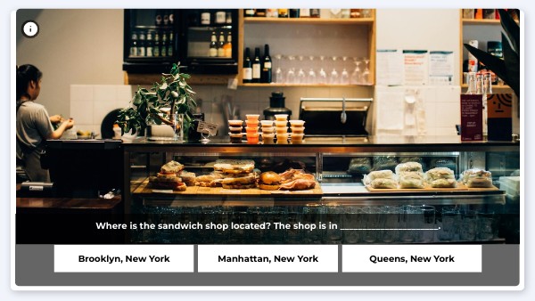 Where is the sandwich shop located? The shop is in ______________________.