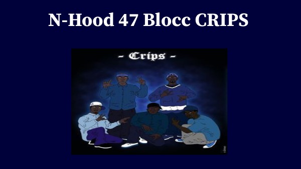 Los Crips son un conjunto de pandillas formadas por afroamericanos, pero no exclusivamente, fundada en Compton, Los Ángeles en 1969. La banda está involucrada en asesinatos, tráfico de drogas y armas, entre otras muchas actividades criminales. Sus miembros usan como "bandera" el color azul, que lucen en todas sus prendas de ropa. Los CRIPS son una organización criminal que querían salir de la situación precaria en la que vivían y el unico recurso que encontraron fueron los actos delictivos. Los inicios no fueron sencillos pero, a lo largo de los años lograron ganarse un nombre y una reputacion en las calles de los angeles y actualmente es una de las bandas que controlan los bajos fondos.