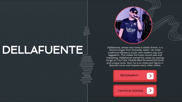 Dellafuente, whose real name is Pablo Simón, is a famous singer from Granada, Spain. He mixes traditional flamenco music with modern trap and reggaeton. This makes his music sound new and interesting. Dellafuente started his career by posting songs on YouTube. People liked his emotional lyrics and unique voice. Now, he is an important figure in Spanish music and inspires many other artists.