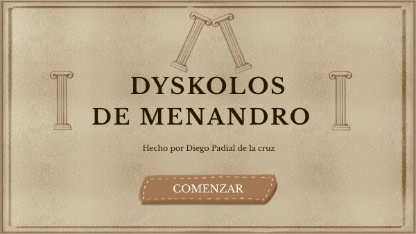 Ambientación: El campo de la región de Ática, cerca de un santuario dedicado al dios Pan.Trama Principal: La obra gira en torno a Cnemon, un anciano misántropo y gruñón, y la vida de los personajes que lo rodean. Desarrollo: Sostratos, un joven ateniense adinerado, se enamora de la hija de Cnemon. La trama se desarrolla con diversos malentendidos y esfuerzos por parte de Sostratos para ganar el favor de Cnemon y conseguir el permiso para casarse con su hija. Personajes clave incluyen a Gorgias, el hijo de Cnemon, quien desempeña un papel importante en la resolución de los conflictos.