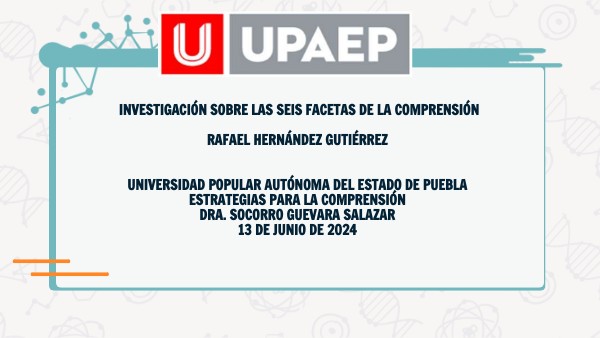 Investigación sobre las seis facetas de la comprensión Rafael Hernández Gutiérrez Universidad Popular Autónoma del Estado de Puebla Estrategias Para La Comprensión Dra. Socorro Guevara Salazar 13 de junio de 2024