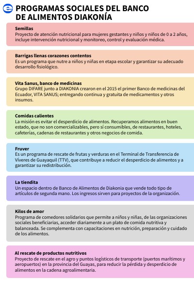 Vita Sanus, banco de medicinas Grupo DIFARE junto a DIAKONIA crearon en el 2015 el primer Banco de medicinas del Ecuador, VITA SANUS; entregando continua y gratuita de medicamentos y otros insumos.