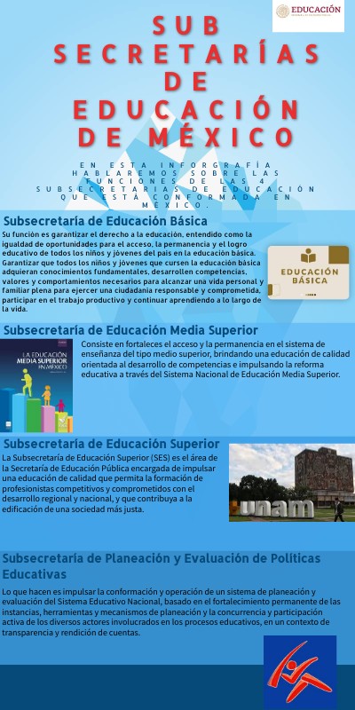 En esta inforgrafía hablaremos sobre las funciones de las 4 subsecretarias de educación que está conformada en méxico.