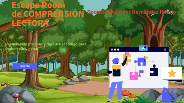 Estás atrapado en un lugar extraño y obscuro para poder liberarte y salbar al bosque tienes que resolver algunos acertijos mágicos, y justo estás por terminar el segundo trimestre, es por ello que o preguntas y llegar a tiempo a tu prueba mágica, en l Escuela Telesecundaria, SI NO LO HACES, EL BOSQUE SE SECARÁ PARA SIEMPRE, es hora de probar tu valentia y lograr lo inimaginable, buena suerte... Instrucciones: LEE LA FÁBULA y responde correctamente las interrognates que se te presentarán y avanza para salir de aquí. Cada respuesta correcta es un código que digitarás al final y poder ganar el juego. Da click en +INFO