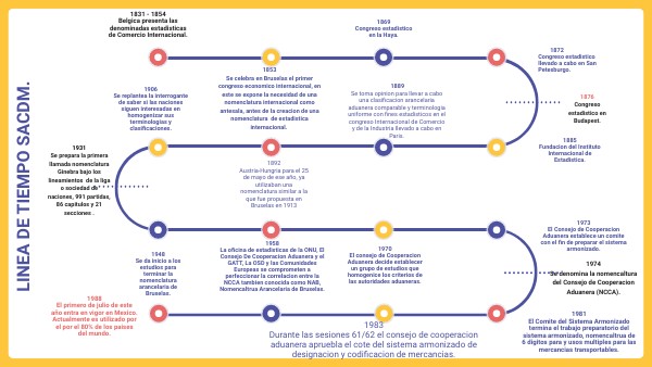 1889Se toma opinion para llevar a cabo una clasificacion arancelaria aduanera comparable y terminologia uniforme con fines estadisticos en el congreso Internacional de Comercio y de la Industria llevado a cabo en Paris.