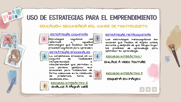 Este trabajo trata sobre el desarrollo de las estrategias para el emprendimiento. Concretamente las estrategias cognitivas, metacognitivas y emocionales.