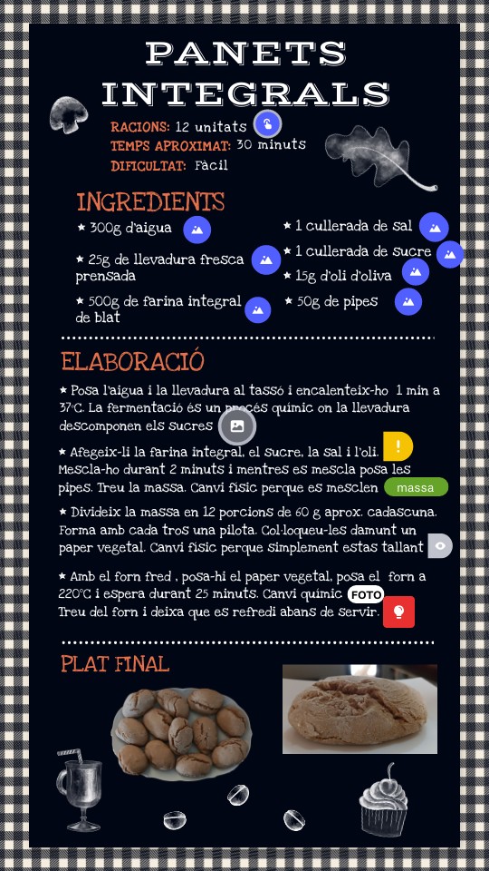 * Amb el forn fred , posa-hi el paper vegetal, posa el forn a 220ºC i espera durant 25 minuts. Canvi químic Treu del forn i deixa que es refredi