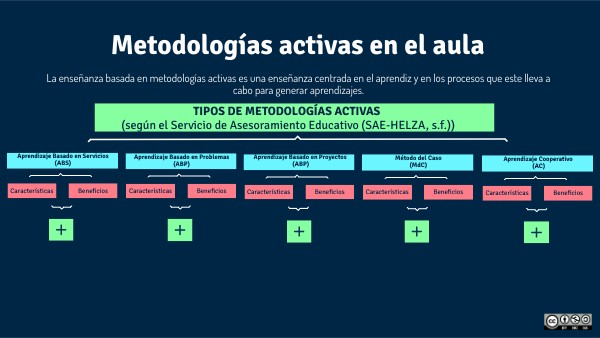 TIPOS DE METODOLOGÍAS ACTIVAS (según el Servicio de Asesoramiento Educativo (SAE-HELZA, s.f.))