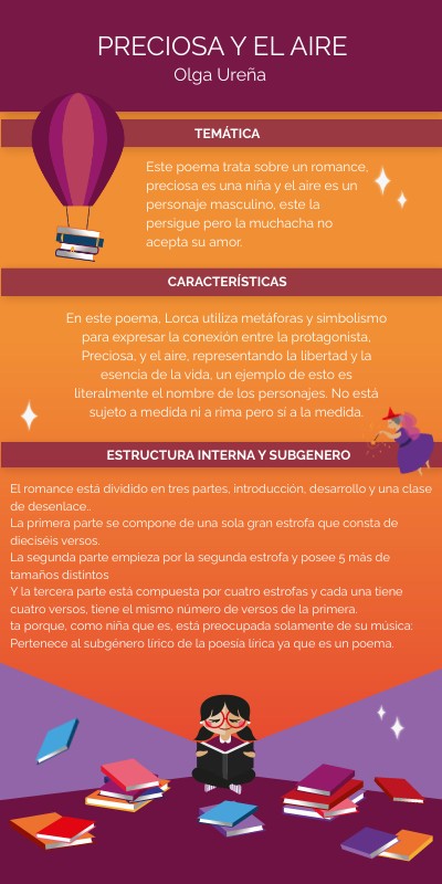 Este poema trata sobre un romance, preciosa es una niña y el aire es un personaje masculino, este la persigue pero la muchacha no acepta su amor.