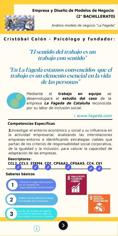 Mediante el trabajo en equipo se desenvolupará el estudio del caso de la empresa La Fageda de Cataluña reconocida por su labor de inclusión social.