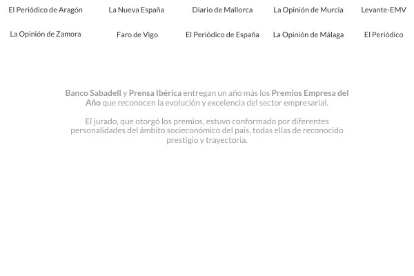 Banco Sabadell y Prensa Ibérica entregan un año más los Premios Empresa del Año que reconocen la evolución y excelencia del sector empresarial. El jurado, que otorgó los premios, estuvo conformado por diferentes personalidades del ámbito socieconómico del país, todas ellas de reconocido prestigio y trayectoria.