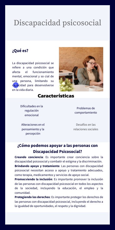 La discapacidad psicosocial se refiere a una condición que afecta el funcionamiento mental, emocional y so cial de una persona, limitando su capacidad para desenvolverse en la vida diaria.