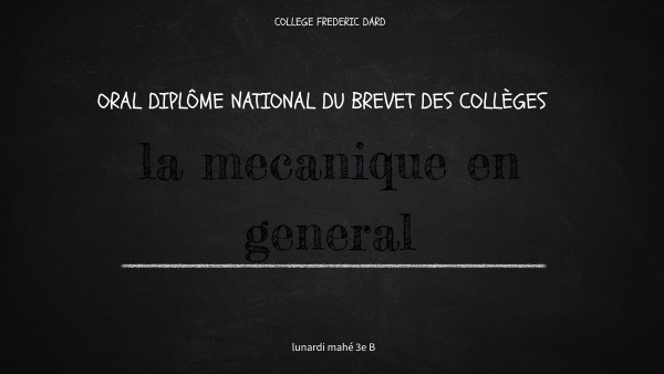 - partie 1 : la mecanique - partie 2 : les diferrent diplome - partie 3 : les different poste - partie 4 : pourquoi la mecanique