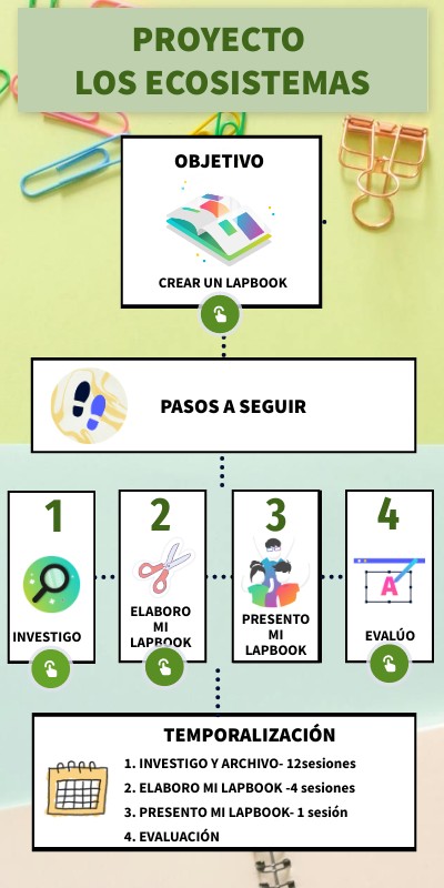 1. INVESTIGO Y ARCHIVO- 12sesiones 2. ELABORO MI LAPBOOK -4 sesiones 3. PRESENTO MI LAPBOOK- 1 sesión 4. EVALUACIÓN