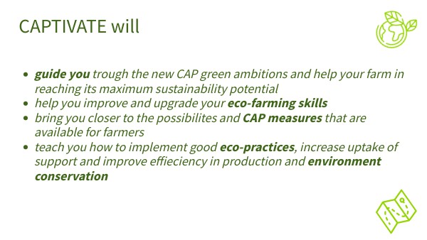 - guide you trough the new CAP green ambitions and help your farm in reaching its maximum sustainability potential