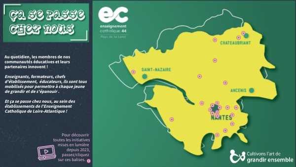 Au quotidien, les membres de nos communautés éducatives et leurs partenaires innovent ! Enseignants, formateurs, chefs d'établissement, éducateurs, ils sont tous mobilisés pour permettre à chaque jeune de grandir et de s'épanouir . Et ça se passe chez nous, au sein des établissements de l'Enseignement Catholique de Loire-Atlantique !