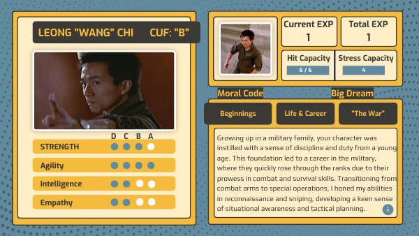 Growing up in a military family, your character was instilled with a sense of discipline and duty from a young age. This foundation led to a career in the military, where they quickly rose through the ranks due to their prowess in combat and survival skills. Transitioning from combat arms to special operations, I honed my abilities in reconnaissance and sniping, developing a keen sense of situational awareness and tactical planning.