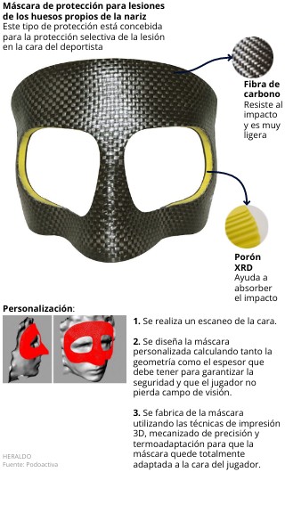 Máscara de protección para lesiones de los huesos propios de la nariz Este tipo de protección está concebida para la protección selectiva de la lesión en la cara del deportista
