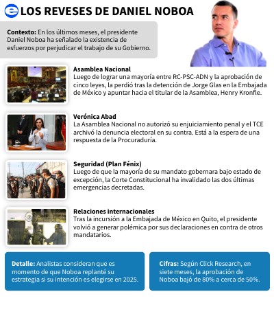 Detalle: Analistas consideran que es momento de que Noboa replanté su estrategia si su intención es elegirse en 2025.