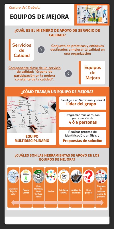 ¿Cuáles son las herramientas de apoyo en los equipos de mejora?