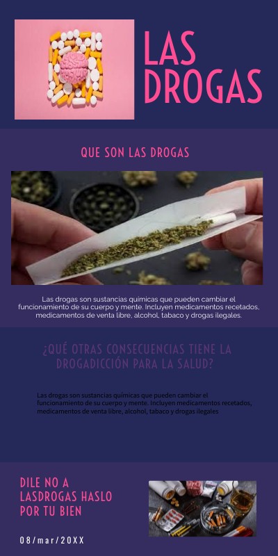 Las drogas son sustancias químicas que pueden cambiar el funcionamiento de su cuerpo y mente. Incluyen medicamentos recetados, medicamentos de venta libre, alcohol, tabaco y drogas ilegales.