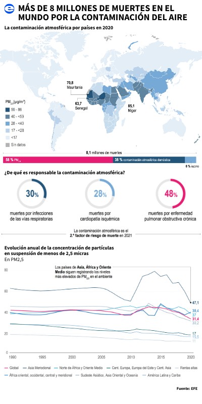 Más de 8 millones de muertes en el mundo por la contaminación del aire