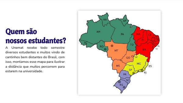 A Unemat recebe todo semestre diversos estudantes e muitos vindo de cantinhos bem distantes do Brasil, com isso, montamos esse mapa para ilustrar a distância que muitos percorrem para estarem na universidade.
