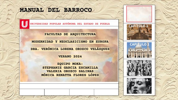 FACULTAD DE ARQUITECTURA MODERNIDAD Y NEOCLASICISMO EN EUROPA DRA. VERÓNICA LORENA OROZCO VELÁZQUEZ VERANO 2024 EQUIPO MOKA: STEPHANIE GARCIA ESCAMILLA VALERIA OROZCO SALINAS MÓNICA RENATTA FLORES LÓPEZ