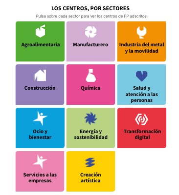 Pulsa sobre cada sector para ver los centros de FP adscritos