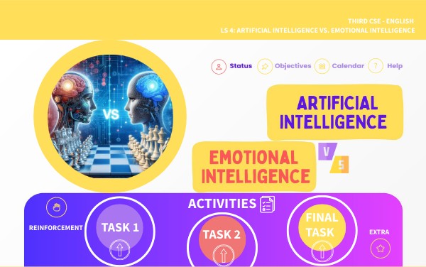 Artificial Intelligence vs Emotional Intelligence. Students are divided into two groups: one supporting and one opposing AI. Each group forms smaller expert teams focusing on different aspects of AI. Two sessions will be dedicated to forming the expert groups and conducting research, and the final session will be for holding the debate.