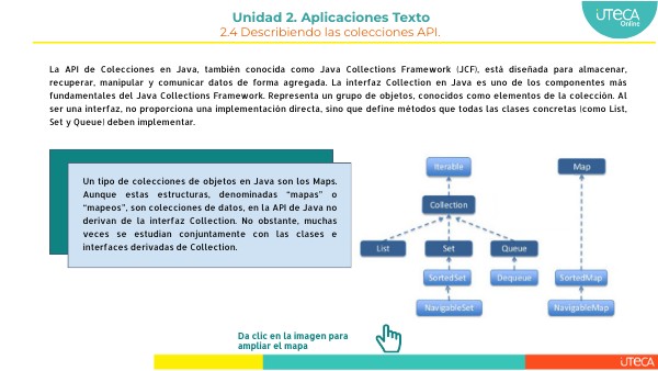 Visita el siguiente artículo para conocer más las colecciones API en Java: Sierra y José Luis Cuenca, M. (2021, julio). Interface Collection (API java). add, remove, size. Ejemplo ArrayList. Diferencia con List. Streams (CU00917C). Aprenderaprogramar.com; aprenderaprogramar.com. https://www.aprenderaprogramar.com/index.php?option=com_content&view=article&id=596:interface-collection-api-java-add-remove-size-ejemplo-arraylist-diferencia-con-list-streams-cu00917c&catid=58&Itemid=180