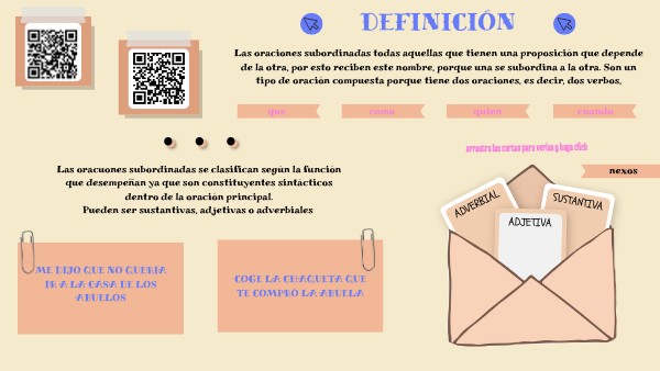 Las oraciones subordinadas todas aquellas que tienen una proposición que depende de la otra, por esto reciben este nombre, porque una se subordina a la otra. Son un tipo de oración compuesta porque tiene dos oraciones, es decir, dos verbos,