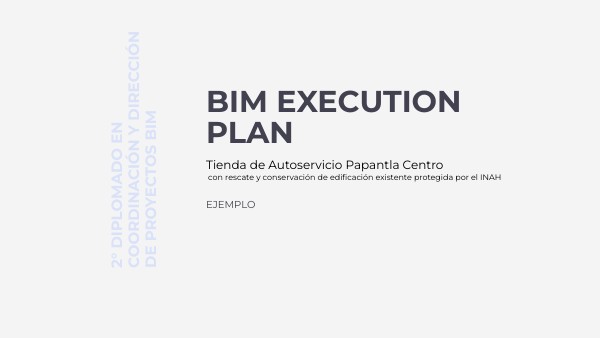 INTRODUCCIÓN Nuestro BEP describe los procedimientos y requerimientos base que se deben de seguir para la preparación, desarrollo y control de un proyecto ejecutivo, realizado bajo la metodología BIM, además de definir las responsabilidades de cada parte integradora. Asegura que todos los proyectistas y demás colaboradores del proyecto ejecutivo, trabajen en conjunto y de una manera similar, además de permitir el intercambio de información eficientemente entre los modelos elaborados por las diferentes disciplinas usando plataformas donde se visualice toda la información del proyecto en tiempo real. Así mismo, el BEP define, entre otras cosas, los usos del modelo(s), los flujos de intercambio de información a lo largo de las múltiples etapas que conforman al proyecto y él como deben estar conformados dichos modelos para que se pueda realizar la extracción de vistas 3D, planos, detalles, mediciones, cuantificaciones, simulaciones. etc. Mediante el uso de esta metodología, se pretende generar ahorros en los tiempos de ejecución de los trabajos, así como detectar errores en tiempo para proponer soluciones y se tengan los menores adicionales posibles en la construcción. El Bim Execution Plan se convierte así, en un elemento imprescindible para sustentar y ayudar a la coherencia de la información del proyecto y de sus cambios a futuro; donde estos últimos se puedan ir visualizando a medida que el edificio evolucione.